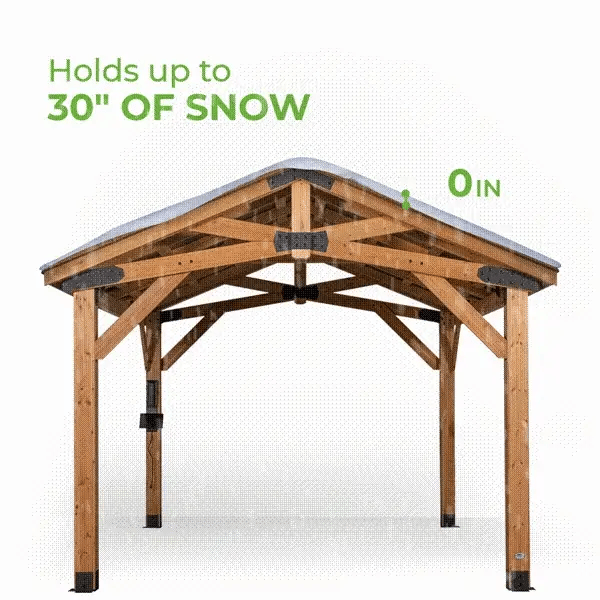 Our heavy duty 29 gauge steel roofs are tested to withstand heavy snow loads up to 30 inches and exceed industry standards making them the strongest gazebo for long term durability and enjoyment.