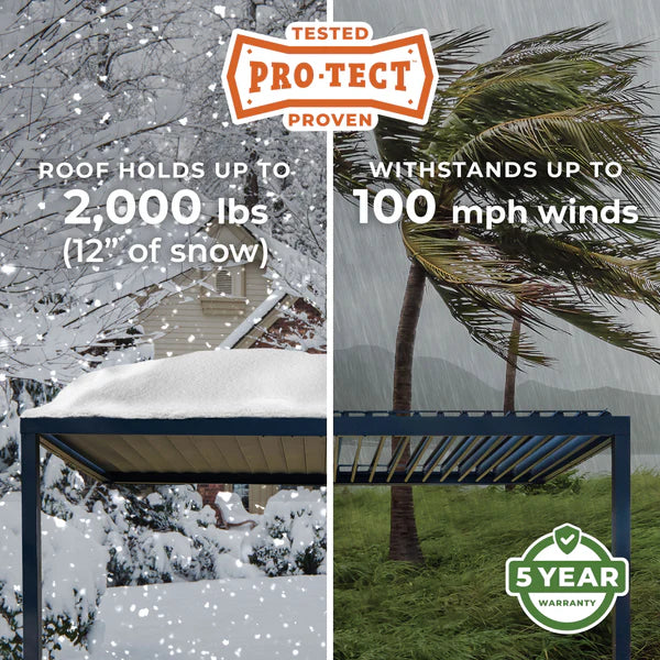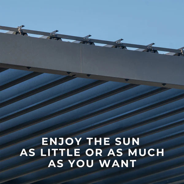 Control sunlight, shade, and airflow with the adjustable roof louvers that open or close with a simple turn of the included wand. Innovative louvers transform your outdoor space, offering seamless weather protection for year-round comfort.