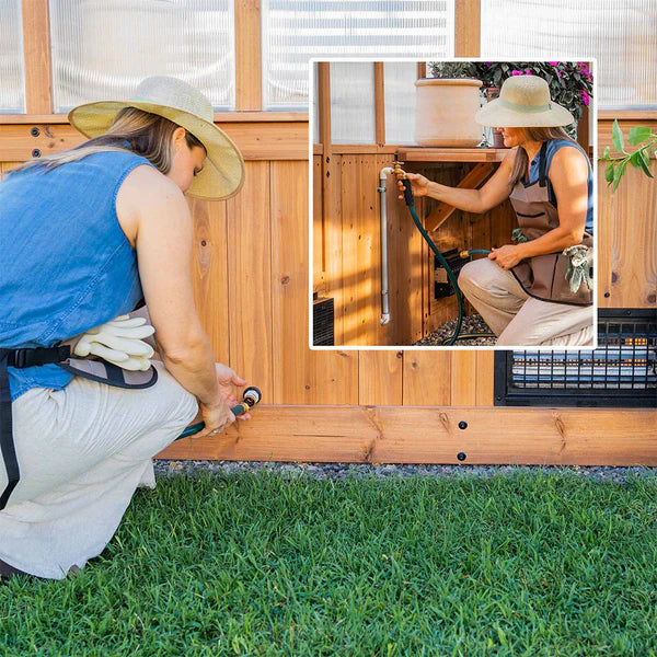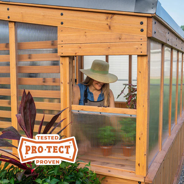 With cedar wood, a strong roof, our patented PowerPort™, and an array of useful features, this greenhouse combines the best materials with thoughtful design.