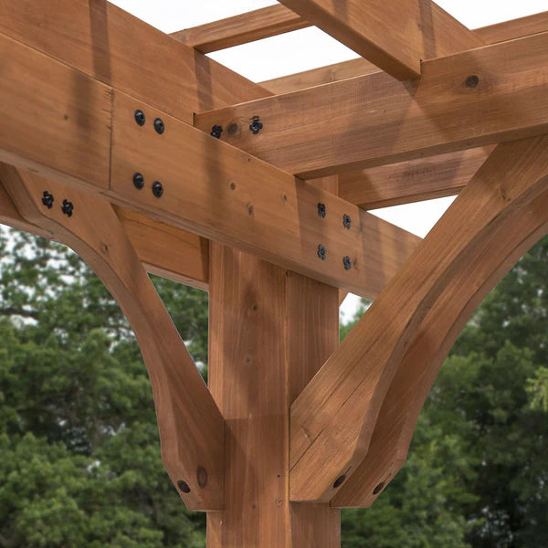 Our wooden pergolas are engineered with dual structural cross beams, robust posts and steel anchoring plates that enhance strength, durability and visual appeal. Have peace of mind knowing they are strong enough to withstand up to 100 mph winds when anchored as directed.