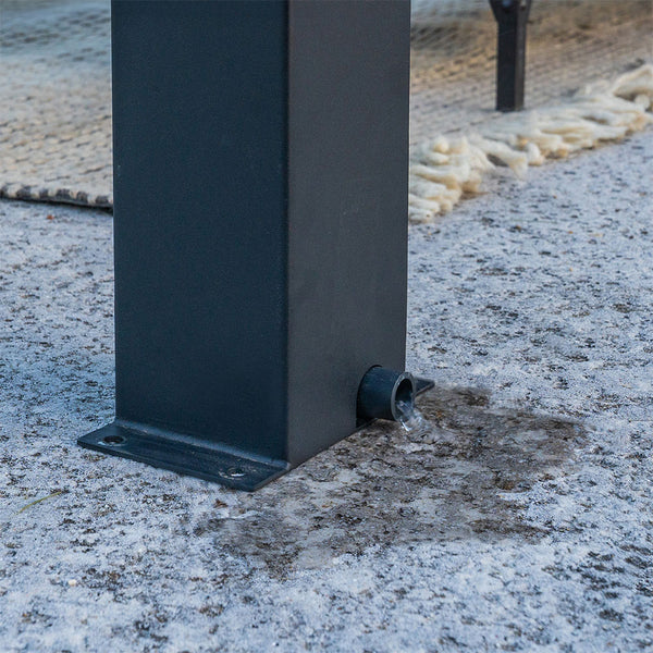 Our metal pergolas are engineered with heavy duty 100% galvanized & powder coated steel, making them capable of withstanding winds up to 100 mph, when anchored as directed.