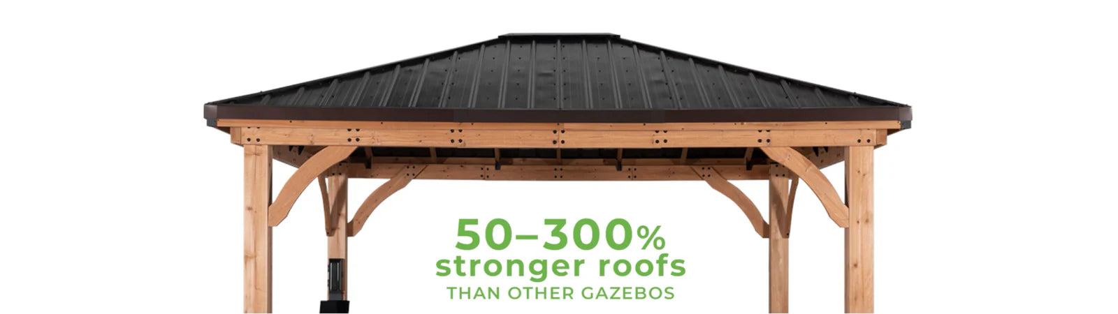 Snow can weigh up to 13 lbs. per square foot. If the roof of your gazebo is a soft top or made from weaker metals, like aluminum, that means one decent snowfall can lead to a total collapse.