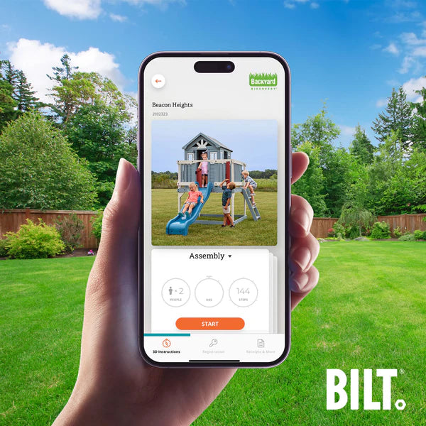 Assemble your playhouse easily by following the step by step instructions on the BILT® app for select playhouse models.