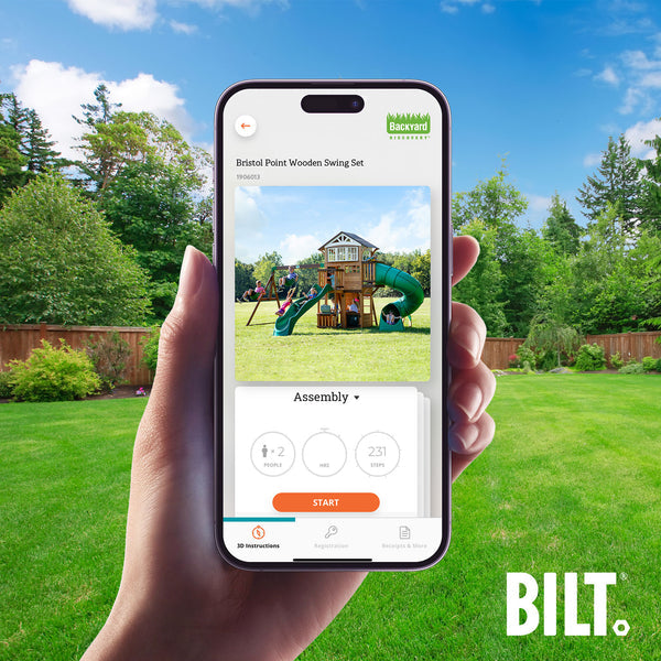 Supported assembly for select swing set models, with the step-by-step 3D interactive BILT® app. We’re with you every step of the way to ease the assembly process.