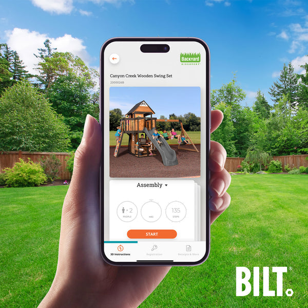 Supported assembly for select swing set models, with the step-by-step 3D interactive BILT® app. We’re with you every step of the way to ease the assembly process.