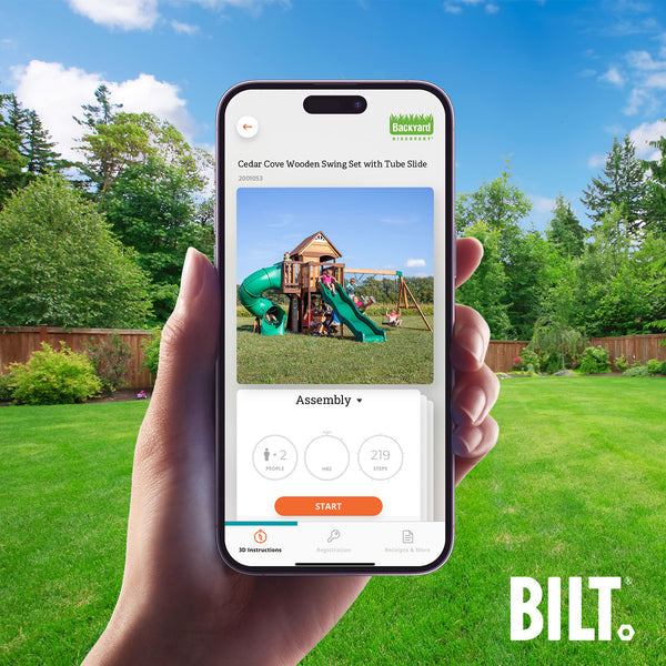 Supported assembly for select swing set models, with the step-by-step 3D interactive BILT® app. We’re with you every step of the way to ease the assembly process.
