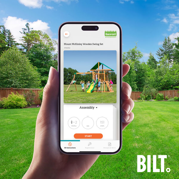 Supported assembly for select swing set models, with the step-by-step 3D interactive BILT® app. We’re with you every step of the way to ease the assembly process.